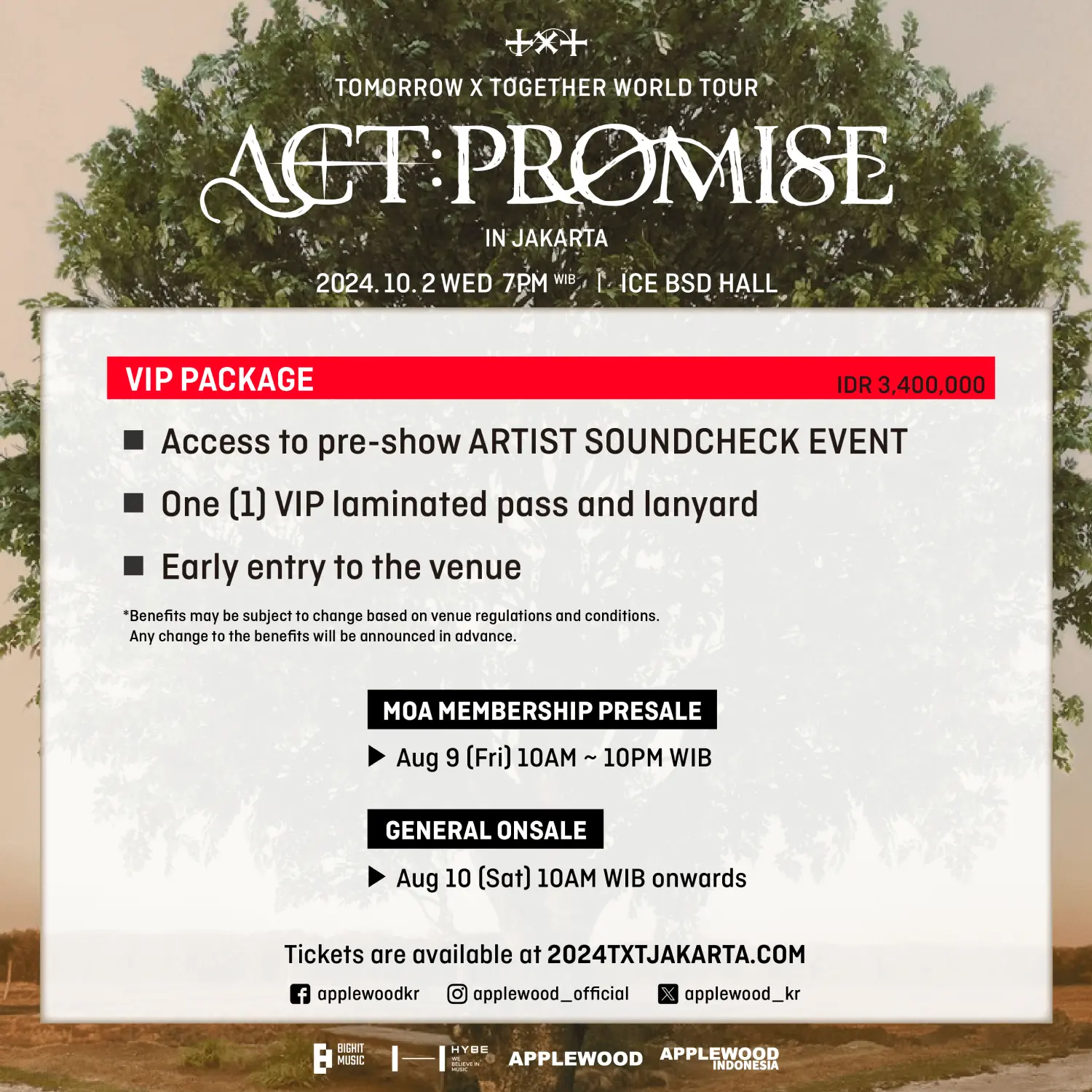 1. Tickets (E-Tickets and Physical Tickets) can be purchased through 2024txtjakarta.com and valid to enter the TOMORROW X TOGETHER WORLD TOUR < ACT : PROMISE > IN JAKARTA
